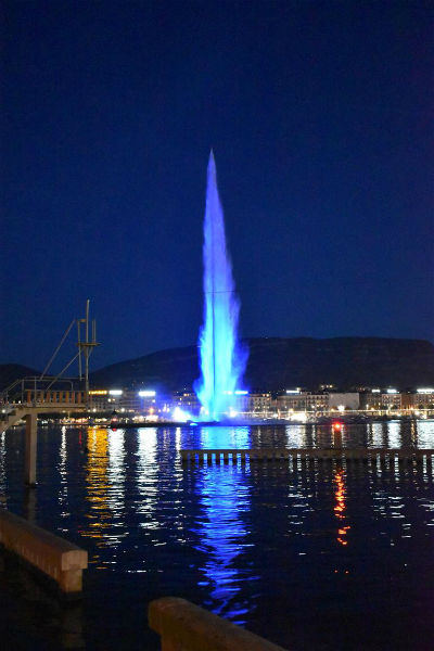 Am Abend war es dann soweit: Der berühmte Genfer Jet d'eau erleuchtete zu Ehren des Blauen Kreuzes in blauer Farbe.