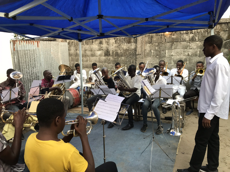 Vor fünf Jahren traf eine Anfrage des Blauen Kreuzes Kongo-Brazzaville bei mir ein. Rund fünfzig junge Menschen würden gerne musizieren, hätten aber kaum spielbare Blasinstrumente. Zusammen mit Hans Rüttimann vom Blaukreuzverein Winterthur schrieb ich mehrere Blaukreuz-Musikkorps in unserem Bekanntenkreis an und erhielt kurz darauf 42 intakte Secondhand-Blasinstrumente geschenkt. Anfang 2017 konnten wir eine erste Sendung mit Instrumenten, Uniform-Gilets und allerlei nützlichem Zusatzmaterial in Kisten verpacken und nach Afrika schicken. Ein Jahr später folgten 25 Kilogramm (!) Noten aus dem Fundus einer aufgelösten Blaukreuz-Musik. Erste Berichte und Fotos aus Brazzaville brachten zum Ausdruck, dass das Material gut eingesetzt wurde.